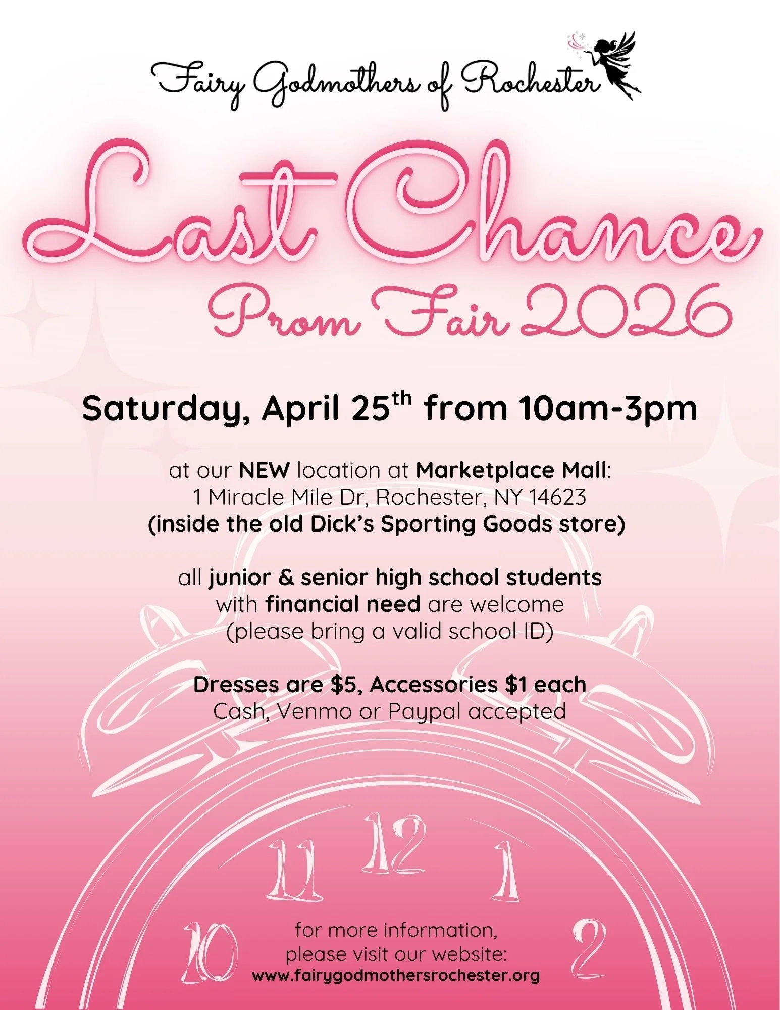 Fairy Godmothers of RochesterUpcoming Events Last Chance Prom Fair- Saturday 4/25- 10am-3pm 2026 Prom Fair Events
